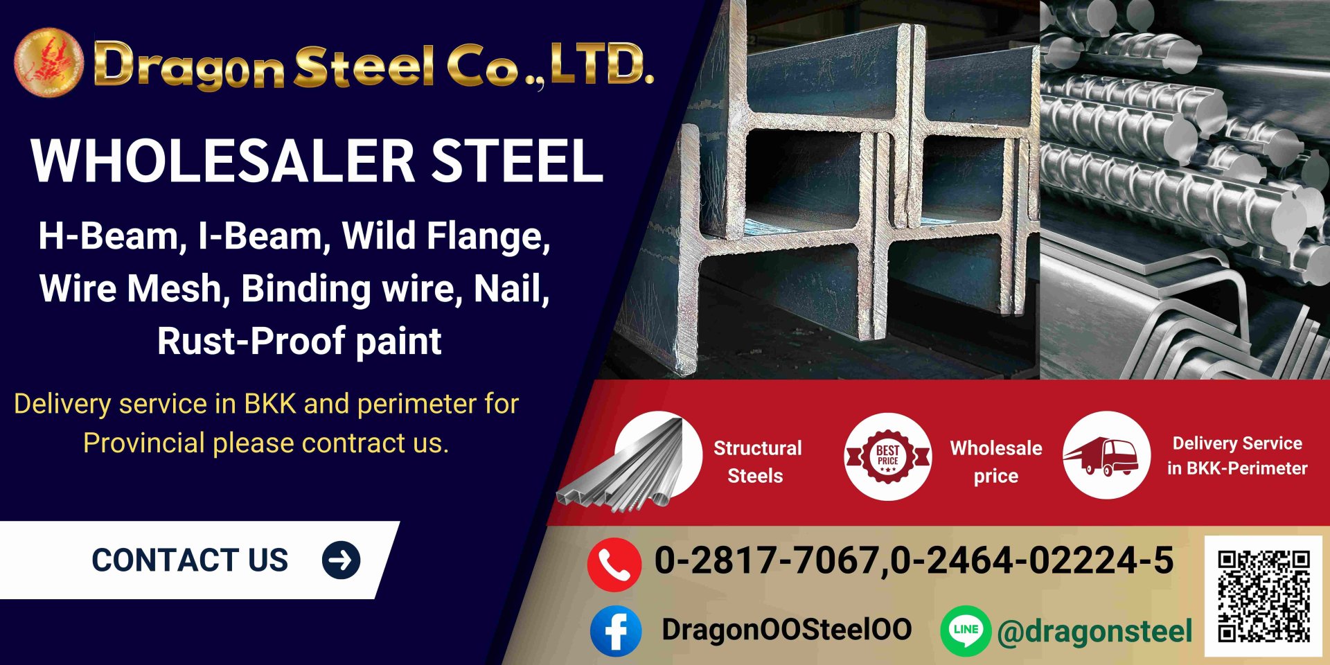 Dragon Steel Ltd., co is a steel wholesaler at Phra Pradang, Samut Prakan.